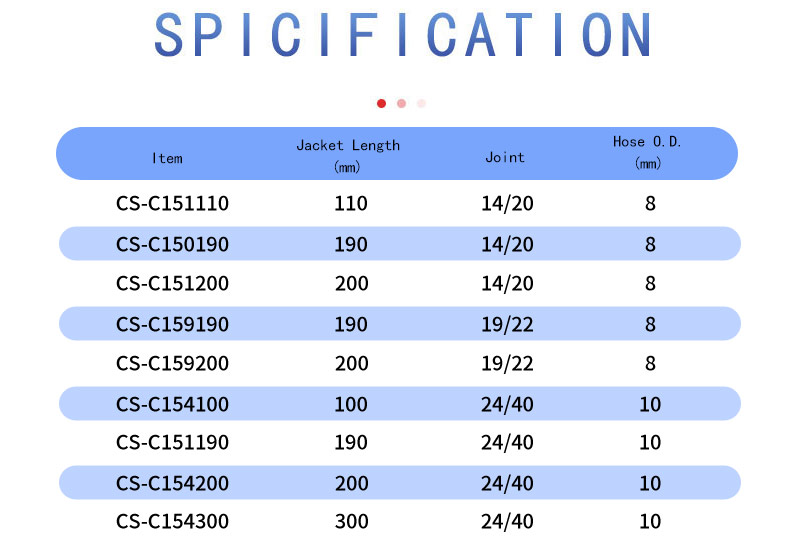 ✔ It is designed with standard taper joint at top and bottom,and two glass hose connections connecting the inner tube through which coolant flows,the lower hose used for coolant inlet,and the higher hose used for coolant outlet.