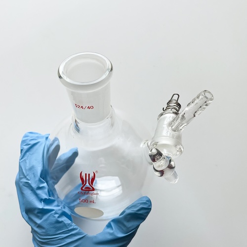 The reaction flask is usually made of thick glass and can tolerate large pressure differences, for anhydrous oxygen reaction experiments