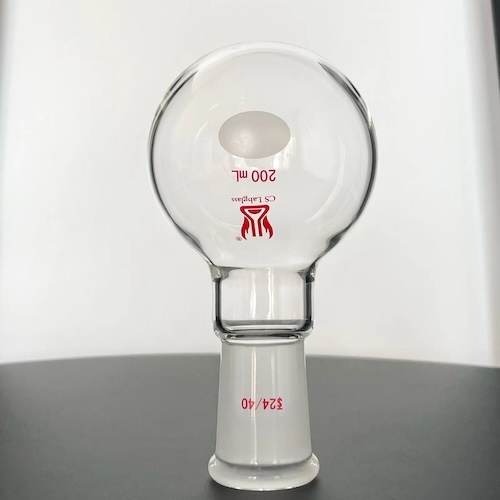 * Round Bottom Shape: The round bottom ensures uniform heating when used with heating devices such as heating mantles or oil baths, reducing the risk of local overheating and potential cracking.