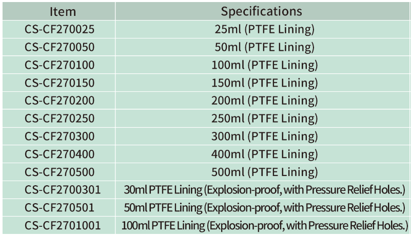 ✔ Max Temperature: 180C. Max Pressure: 3Mpa. Heating/Cooling Rate: 5 C/min. Material: 304 Stainless Steel. Chamber: PTFE.