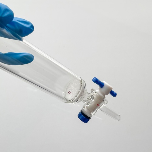 ✔ Chromatography column with fritted disc, (G2) 20~35 μm Nominal Max. pore size.