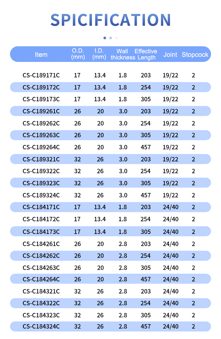 ✔ The chromatography column has a standard taper outer joint at the top, a fritted disc, a 2mm/4mm PTFE stopcock at the bottom and thick-wall design for improving safety under pressurization.