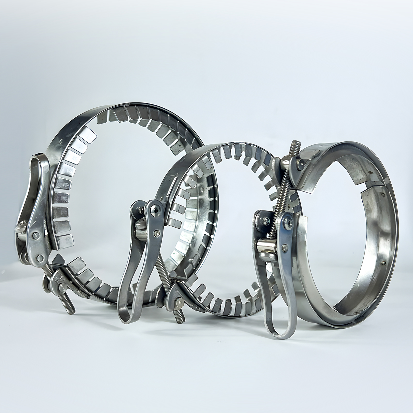 * The flange clamp features a rounded band edges design for protecting reaction vessel from cuts.