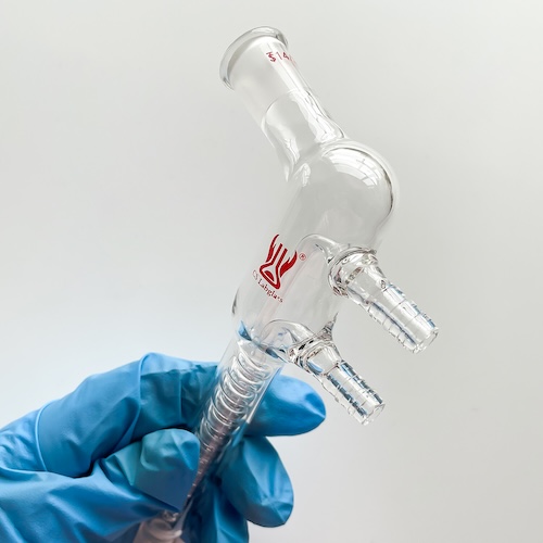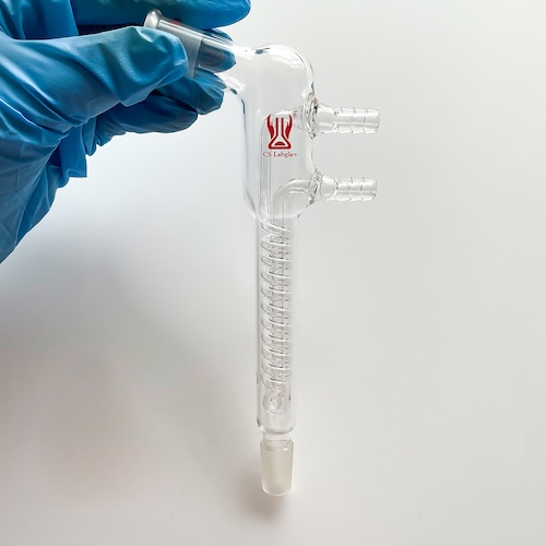 ✔ Reflux condenser has an inner spiral tube that provides maximum cooling area, ideal for condensation of volatile and low boiling solvents.