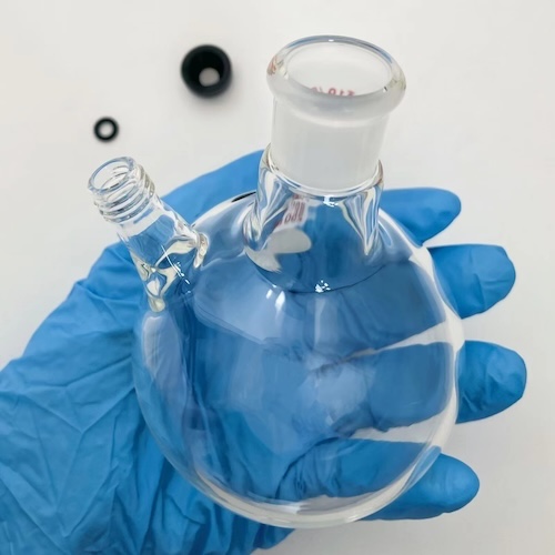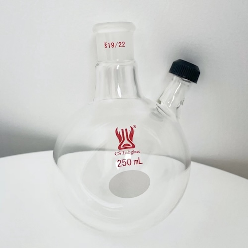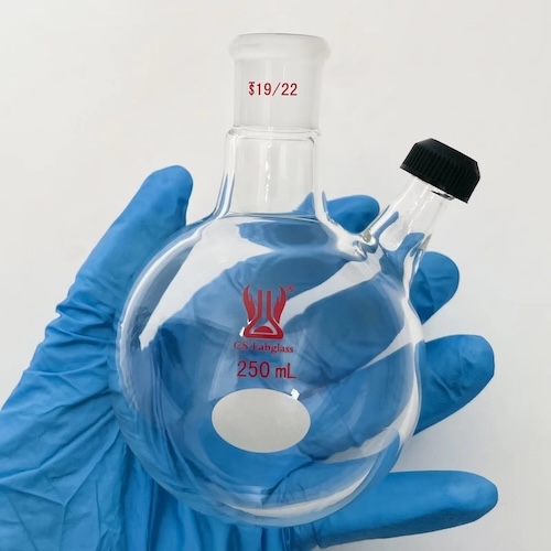 * Round Bottom Shape: The round bottom ensures uniform heating when used with heating devices such as heating mantles or oil baths, reducing the risk of local overheating and potential cracking.