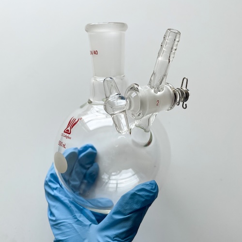 The reaction flask is usually made of thick glass and can tolerate large pressure differences, for anhydrous oxygen reaction experiments