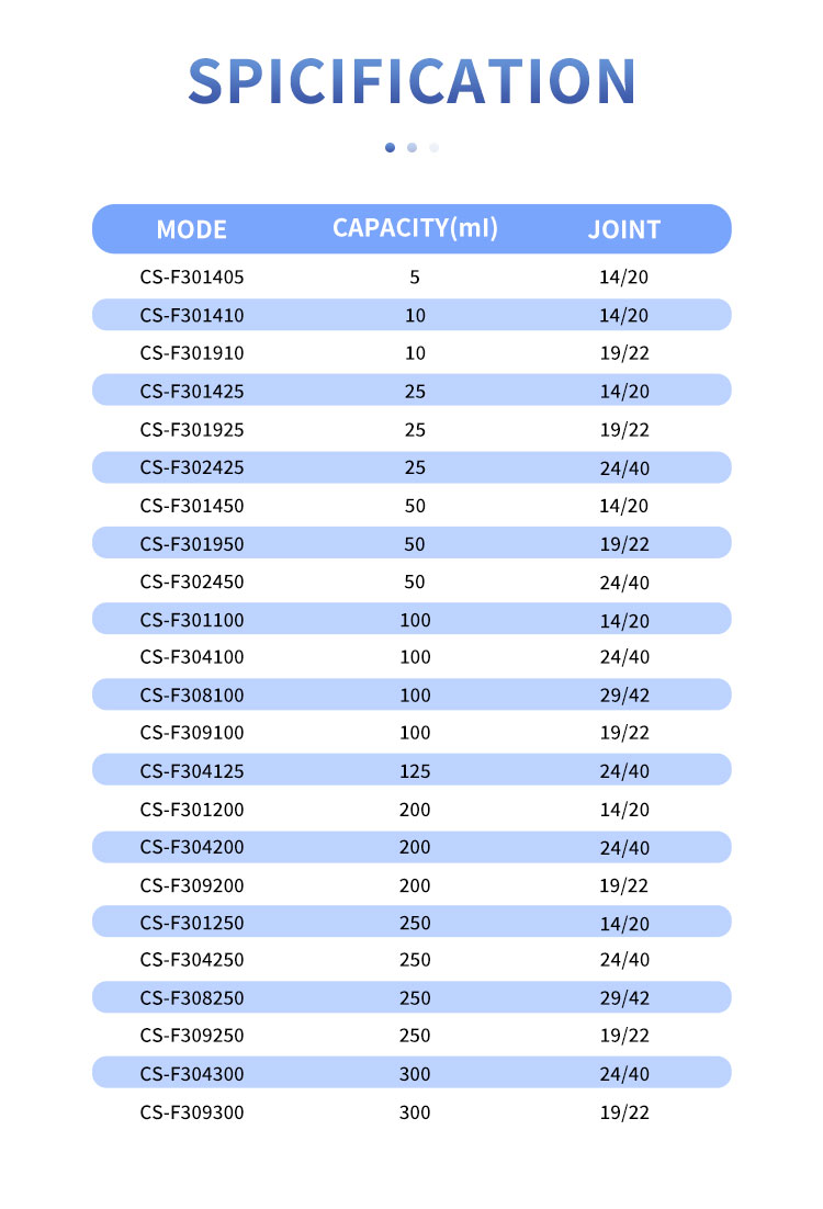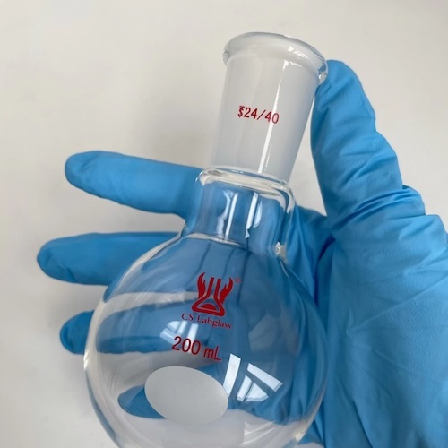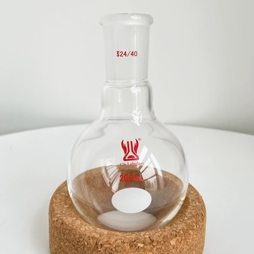 * Round Bottom Shape: The round bottom ensures uniform heating when used with heating devices such as heating mantles or oil baths, reducing the risk of local overheating and potential cracking.