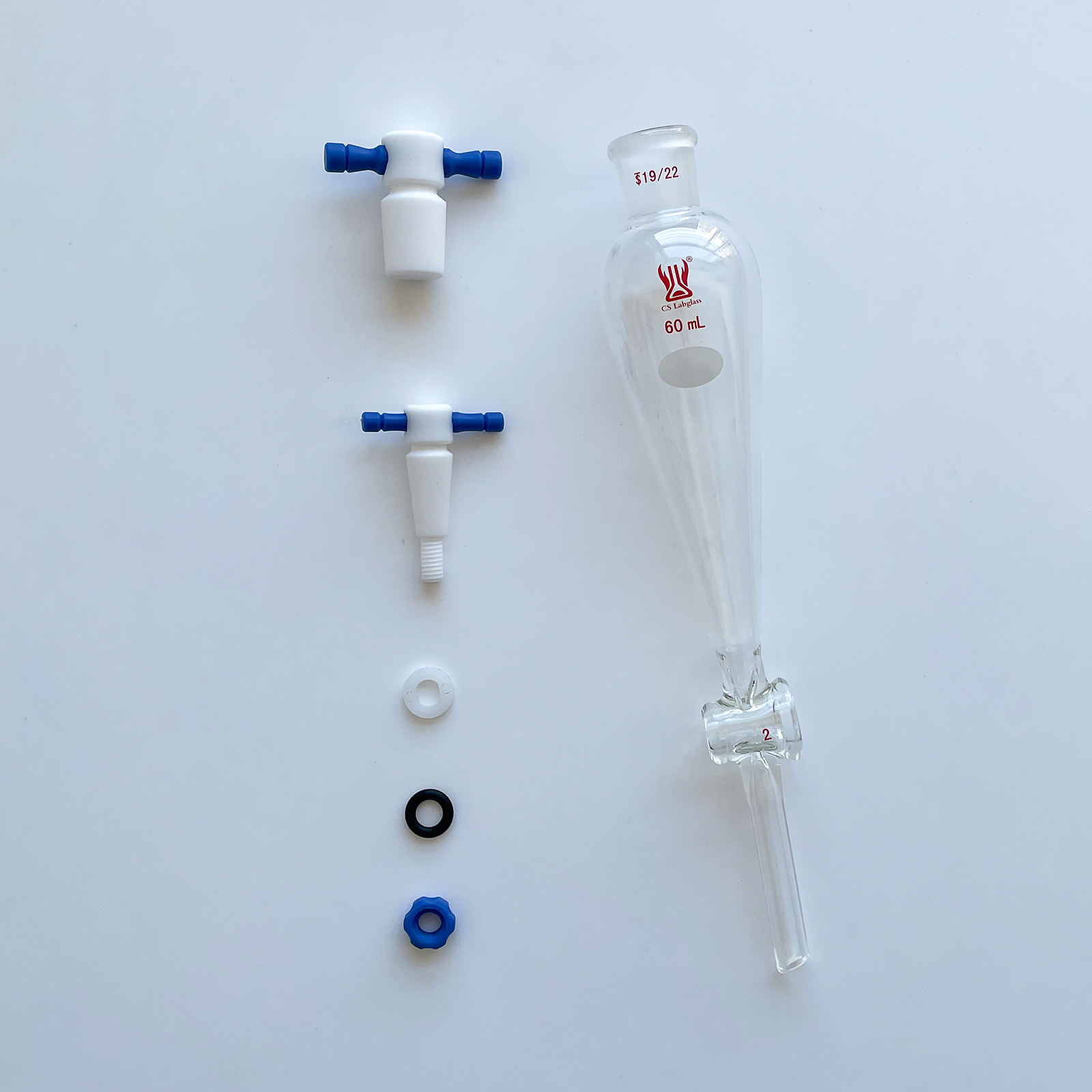 A precision-engineered separatory funnel with PTFE stopcock for laboratory liquid separation. Manufactured from high-quality borosilicate glass for excellent thermal and chemical resistance.